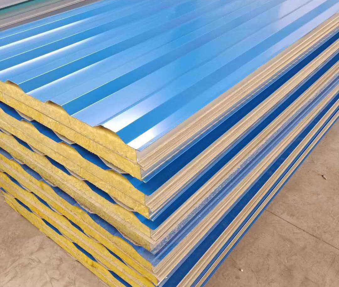 彩鋼復(fù)合板面板及底板與保溫芯材通過粘結(jié)劑(或發(fā)泡)復(fù)合而成的保溫復(fù)合維護(hù)板材。
